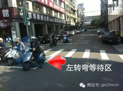 6、司机不按喇叭 在台湾的马路上,只能听到一种喇叭声,那就是救护车或警用喇叭。 不管是否堵车,行人挡路,在台湾,几乎听不到喇叭声。有人行人挡住了摩托车或汽车的路,司机也不会按喇叭催促行人,直到行人发现挡路后,赶紧让开,并向司机表示歉意,司机也会向行人笑笑。 其实有时候按喇叭与不按喇叭,在时间上并不会有明显区别。不按喇叭,挡路的人会有歉意,按了喇叭,挡路的人虽然有过,同时也会有怨。而且按喇叭也扰民。没有权利去催促和教训别人,与其希望别人为自己让路,不如放慢自己的速度,给别人一个机会,为别人多做一些。 我在北京开车已经有一年不按喇叭了,也没有因此发生过任何安全事故。我的喇叭还能不能按响,恐怕只有验车时才知道了:) 这一点或许是两岸交通法规最大的不同。机动车在红灯时不能右转弯,必须要等直行是绿灯时才能右转。而且遇到行人过马路要停车让行。 摩托车(台湾叫机车)、自行车左转弯时要分两次左转。在自己所在道路直行是绿灯时先停到右前方的待转区等待,等到自己前进方向是绿灯时再通过路口,完成左转。