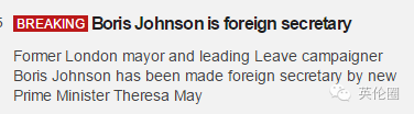 曾经是能源大臣的Amber Rudd接替梅姨本人成为新的内政大臣,以后留学生和移民归她管了... 然后大新闻就来了!约翰逊·鲍里斯成为外交大臣!!这大概将成为世界上画风最为清奇的外交部长...梅姨就这么让他成为英国的脸面,也是出其不意防不胜防。 而在这之前,鲍里斯背叛了卡梅伦成为脱欧派主角,然后在大功告成之后被好基友Gove背叛宣布不会竞选首相。我们和英国媒体都以为鲍里斯的政治生涯已经完了...