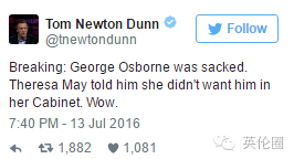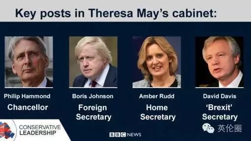 而原英国外交大臣哈蒙德,接任奥斯本,成为财相。下面这就是梅姨新任命的左膀右臂,可以说是又一轮大换血。