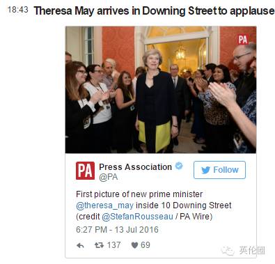 进入首相府的梅姨遭到工作人员的热烈欢迎...