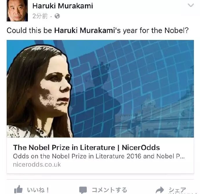 假如世界上有诺贝尔生活方式奖,得主一定是村上春树吧如你所料,村上春树又输了。这一次更麻烦,输给了号称“他不需要诺贝尔,但诺贝尔需要他”的 Bob Dylan。 但是,村上真的值得同情么? 这当然不是说村上配不上诺贝尔文学奖,而是每年的这个时候,村上春树都不得不被推到人群中,被复杂、调侃的眼神打量一番。就像小李子之于奥斯卡,(大)部分人并不是真的同情村上春树,而是如果没了村上春树这个几乎是唯一认识的熟脸——怎能对诺贝尔文学奖评头论足一番? 来自村上春树的 Facebook“今年村上能得诺贝尔吗?”,似乎这条推并非本人所发,而是他的出版社 村上本人也被问起每年因诺贝尔文学奖而被讨论的事,他说:“讲真话,挺困扰的。因为又不是正式的最终候补,只是被民间赌博机构拿来定赔率。又不是赌马。” 但我们有理由相信,村上并不会为此困扰。他的身份不仅限于作家,或者说,他留给人们的影响,绝不仅限于文字世界传递的观念和体验,而是各种层次的日常生活:健身、旅行、爱情、性……乃至如何保持愉悦的性情?如何面对人生的决定性瞬间,又如何与孤独相处? 而诺贝尔历来偏好的严肃文学得主,关注政治、国家、种族、性别……与它们相比,村上本人似乎更关心日常生活中的趣味,而且大部分都被他安放到了作品主角身上。这种趣味往往被现代人忽视,甚至视作大敌——男人应该永远保持精力充沛,一心拼搏奋斗,永远一副“撸起袖子,冲到前方”的模样。生活似乎总是应该要“为了些什么”的,而村上就是典型的“不为什么”的人。 ━━━━━ 冲动的酒吧老板 村上春树是一位很美式的小说家。 大学期间,他就开始混迹于爵士乐酒吧。在《国境以南,太阳以西》中,村上写一个爵士乐酒吧老板的生活: “开始我也进吧台调制鸡尾酒,后来开到两家,便再没有那样的工夫了,转而专门负责经营管理:洽谈进货,确保人手,记账,注意凡事不出差错。我想出了种种方案,并及时付诸实施,食谱也由自己多方改进。以前我没有意识到——看来自己很适合干这个活计。我喜欢做什么东西从零开始,喜欢将做出来的东西花时间认真改良。那里是我的店,是我的天地。而在教科书公司审稿期间,我绝对不曾品尝到这种快乐。” 村上春树后来开了一间爵士酒吧,名为“Peter Cat Jazz” 这种快乐,与他之后的写作、长跑,似乎是同一种快乐。他决定开始写作的过程也十分自然、干净利落,过程却仿佛似有神谕。 村上是在1978年4月1日下午一点半决定写小说的。那时候读了7年大学的他毕业没多久,年近而立,没费什么心思去找全职工作(在当时的日本是一种“自甘堕落”),和妻子阳子贷款开了这间酒吧,每天从头到晚地听爵士、调鸡尾酒、做三明治。据村上在伯克利的演讲: “我清楚记得那一天,那天下午我在看一场棒球赛,我坐在外场区喝啤酒。我喜欢的球队是 Yakult 燕子队,当时是跟广岛鲤鱼队对阵。燕子队的第一击球手是戴夫·希尔顿,一个美国人…..不管怎么说吧,他以一个二垒打将第一个投给他的球击到了左场。就在这时那个念头一下子击中了我:我能写出篇小说来。” 酒吧店长村上春树 村上在决定做全职作家后,关闭了酒吧,如今这里已经彻底关闭 他去酒吧附近的文具店买了自来水笔和一叠纸,每天酒吧打烊后,他就坐在厨房边上的桌子上写一两个小时,直到凌晨三四点。有时候,他深夜回到家中,一直写到太阳升起,下午再去工作。就这样断断续续写了两本书。“我觉得自己活过了相当于普通人两倍的人生。”他的第一部作品《且听风吟》获得了群像奖,这给了他一点信心。32岁那年,他决定关掉酒吧,成为一位全职作家。 ━━━━━ 听爵士、热爱流行文化的美式青年 这是一位随性、热衷流行文化的美式青年。随性到了什么程度呢?在学校的时候,他留一头及肩长发,还留了胡子。“一副常青藤名校学生派头”,但是在早稻田这身装扮总给他带来别人惊异的目光,“我不在乎别人怎么想,于是干脆邋遢下去。” 在美国旅居期间,他只喝百威干啤,穿普通学生会穿的轻便运动鞋和T恤,开一辆二手本田雅阁。他告诉《Los Angeles Times》记者:“我愿意干吗就干吗,在这儿我不是名人,没人在乎。” 年轻的村上和他的猫 同一个村上、同一种眼神和不同的猫 在《斯特普尼克恋人》中,他的主角对流行文化信手拈来:K喝的啤酒一定是 Amstel 牌子的,敏背的是 Mila Schon 的背包,有一次K取笑富有的敏一定拥有“马尔克·博兰(摇滚明星)钟爱的蛇皮拖鞋”。 更不必说他偏爱波士顿马拉松,用苹果笔记本写小说,喜欢穿美国牌衬衫写作的事。去年,村上在网上图文并茂地向读者介绍了自己书房的光景,桌上搁着苹果电脑,放着瑞士国旗咖啡杯、稿纸、Moomin 滑鼠垫等。 村上春树的写字台全景 村上喜欢用的铅笔 对了,村上自己还是一名资深“果粉”。自从1991年以来,Mac、iPod、iPhone 到 iPad,他感叹“真不知道自己花了多少钱在 Apple”。曾有读者向他提问,如果有一天,世界只剩下村上一人,他会做些什么。他回答:“也是躺着读读书,用 iPhone 听 Marvin Gaye,时常跑步。” 资深果粉村上春树 他喜欢爵士乐,喜欢听60、70年代的美国流行音乐,披头士、里克·尼尔森、沙滩男孩、比利·霍莉黛都是他的歌单榜首。在听了“爵士信使”的现场音乐会后,15岁的他已经开始悄悄省下午饭钱买唱片了。对于音乐,他