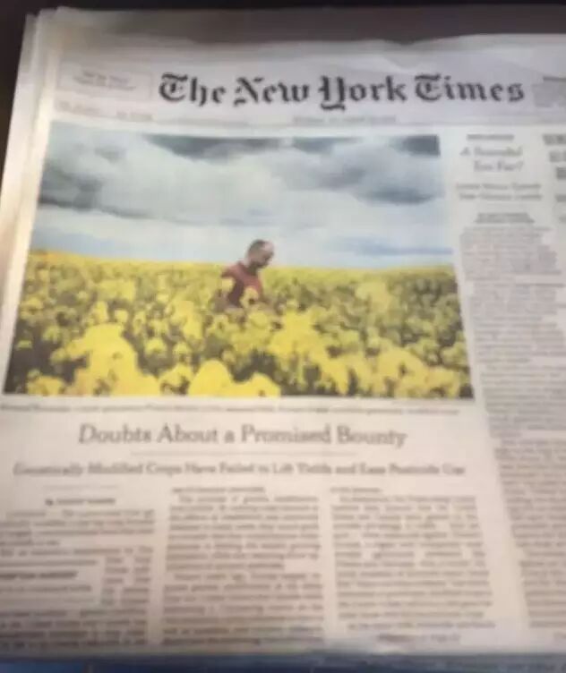 纽约时报最新头条:转基因既无增产优势,也没减少农药使用纽约时报调查发现:转基因既无增产优势,也没减少农药使用 常天乐编译自《纽约时报》 《纽约时报》10月29日头版发表调查新闻,发现虽然“增产”、“减少农药使用”、“养活世界人口”是发展转基因的借口和卖点,但是几十年来的数据显示,转基因产品既没有比常规品种显示出增产的潜力,甚至农药使用量还大大增加。