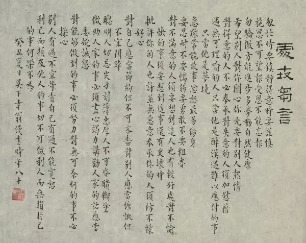 胡建君丨陆康印象一、斯世斯人 我来上海,忽忽十数年,不断有各种朋友在不同场合对我说:你一定要认识陆康! 大概他们知我怀旧,向往过去的江湖,欣赏情至深者与侠之大者。他们说在陆康身上还能看到民国文人的风范,知进退,明得失,通达萧散,渊雅风流,既得庙堂气又深谙江湖气。作为陈巨来先生的得意弟子,陆康工书法篆刻,天资纵逸,走刀如笔,尤以鸟虫篆和元朱文名冠海内。他们说陆康率性慷慨,绝对性情中人,酒酣耳热之际,三言两语相投,往往借着醉意赠送自己的作品。陆康喜欢喝酒,竟自费包下淮海路国际广场四十五层的九龙山会所,广邀沪上三百多位朋友一起笑谈宴饮,不醉不归。“愿掷黄金三百万,交尽美人名士”,这般豪迈气派,令人想到古龙,喝到兴头上,往往挥手把酒店整层楼的单都买了。名士风范,庶几近之。他们说陆康懂岐黄,会针灸开方,亦习易学,能起卦看相,一眼洞穿你的前世今生,只言片语便能警醒梦中人。他们说陆康三教会通,身边胜友如云,常有名流巨子锦衣夜访,问疑论道、砥砺切磋;更有名寺住持上门合十来敬,请他撰联题额,颜其大殿;星云大师的“百年佛缘”印也是他的大作……于是,未曾谋面,陆康先生的大名便如雷贯耳,似乎已相识多年。他并不在我的江湖,却又无处不在,像水和空气一般永恒。 记得壬辰年夏,在张伟生老师的宴席上,我第一次遇到陆康。许有宿缘,果真一见如故,如同久别重逢。陆康先生虽是我景仰的长辈,然言谈间俯仰挥斥、逸兴遄飞,全无时空感和年龄感,真是生动、广阔而明媚。只见他沉默时饶有威仪,说笑间晴空万里,令满座蓬勃,一室生辉。席间,明松谬夸我能赋诗填词,陆康当即拊掌而笑,说近年来一直致力于祖父陆澹安的遗稿整理,其中由明松筹划的《庄子末议》一书即将付梓,想请我填词。次日我即带学生北上写生,途中匆匆完成一首《八声甘州》寄赠,陆康认为文情俱佳,由衷感慨道:“祖公倘健在,定喜纳你为女弟子。”我心下愧惭,更神往非常。斯世与斯人,渺矣不可寻,所幸在陆康先生身上,还能依稀遭遇旧时的月光。 才从外地写生回上海,陆康便设宴款待,请的都是气场相合的人。见面即赠我一方“海上君宁”的鸟虫大印,一时受宠若惊。灯下谛视,只见印面繁饰巧妆又文雅舒展,鱼鸟暗藏。之前明松送过他一本我的散文集《飞鸟与鱼》,篇首有诗云:“飞鸟在天鱼在水,风云有续不相违。鸟飞网角鱼升树,情以何堪说是非。”他一定记着了,并说鱼鸟的气息也与我暗合。再看印面,竟有了一种自在的欢喜与华丽的忧伤。后来他说这方印是他当年刻得最满意的一方,花足了心思,我也感念这份珍重的情意。 「海上君宁」 陆康又见我在书里写到画家朋友王瑛,表示同样欣赏她高蹈绝俗的品性。他并未见过王瑛,仅仅因为这篇文字,又听闻她没有合适的名章,便刻印二枚交由我转赠。他说“王瑛”二字不易排布,笔画一少一多,又有两个“王”字形,含对称而少变化,每每临睡前便在被头上用手指比划,好几天后才一鼓作气地下刀刻就。两枚印风格各异,供她随意取用。为一位陌生的朋友,亦如此用心,庄重不苟,足见其性情与品格。沪上大收藏家、篆刻家王鸿定还说起,有次请陆康先生确认高古青铜剑上的几个鸟虫篆铭文,他一一辨识后写在纸上寄来,随释文送达的,还有厚厚一本他亲自去复印的《东周鸟篆文字编》以供参照。 后来陆康邀我去往他府上一叙。我提前半小时抵达,本想找地方消磨些时间,竟远远望见他早已端立在大门口等候。那天下着细雨,他手提一把红色长柄伞,满面笑容,微微颔首,一时间我感动莫名。后来发现陆康每次宴请宾客,总会提前半个多小时抵达,并备足上好红酒,务必等所有人到齐才开席。朋友们习惯了他的风格,都不好意思迟到。而且他的饭局,会考虑诸友朋之间个性气质是否相合,必精心安排彼此的座位,有时会写在纸上斟酌编排四五遍。席间他会照顾到在场的每一个人,特别是左右的女士,为之添酒夹菜,且海阔天空地调动欢愉气氛。他常言:“我的友朋非常多样和多层次,我尽量组合成有趣味而相洽的晤聚,不要让一天淡然白过。”陆康组合的聚会,似乎都有和谐的气场和端正的能量,互相激扬催发,和乐融融。每个人身上那些真善的本性,都被无拘无束地释放出来,一时尘世俱远,初心永驻。无论何时何地,因为有他,都成良辰美景。很多朋友,因他而改变了生活方式和人生态度,世界由此豁然开朗。 美食家如陆康,上海有特色、有名头的饭店鲜有他不曾光顾的。他信奉“钱用掉是财产,用不掉是遗产”,遇到新开张的店恰合他的口味与格调,便会一掷万金地当场办卡,随之络绎宴请好友们品赏。每次去他的聚会,酒肆服务生们都极尽周到,因为他会真诚赞赏他们的服务,记住每一个人的名字和家乡,时常奖赏不菲的小费,并在年终请他们餐叙。在上海这么多年,我是第一次见到有人专门宴请饭店服务生的。他习惯性地关照到身边的每一个人,不论位卑位尊、富贵贫穷。比如他的门卫、保安、司机、钟点工等等,都时常受他施惠照应,这大概是一种与生俱来的仁厚之心与贵族风范。 所谓“大知闲闲”,陆康只施恩,不交恶,不轻一人,不废一物,与人无嗔无求。似乎没有见过他动气,最多只说一句“此人不好玩”,便疏于往来。鲁迅当年说过,最高的轻蔑是无言,而且连眼珠子也不要转过去。而嫉恶如仇的鲁