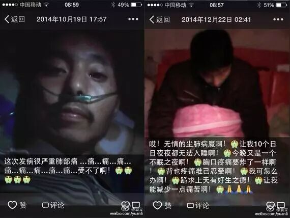 从那以后,我渐渐地改变。我可以去路边吃一个番茄炒鸡蛋,我可以跟别人聊天,我可以去关心别人。我突然觉得我降下来了,我再也不飞在天空中了,我突然觉得我降下来了以后我很舒服,其实飞在空中的日子是不舒服的。 我以前有很多爱马仕包,可是当我背上了以后,它只是一个很硬的包,只是跟别人炫耀,“I have Hermes。” 我很special(我很特别)。然后呢,其实又怎么样呢?它给我带来了很多快乐吗?我觉得它没有给我带来非常非常多的快乐。 你去种地,不要全收光 我回到中国以后,我想说,我们的《圣经》上教导,你去种地,边边角角,不要收光,要留给穷人一点,不要全收光。你有十分之一的奉献要交给教会,要去帮助穷苦的人。这个对我有很多重要的帮助。那我就想说,我也需要把我的钱的十分之一,拿去帮助穷苦的人,所以我就在寻找项目。 当然,我回到国内以后,我去帮助儿童,帮助一些抗战老兵。我觉得我帮助的群体没有任何问题,但是我在帮助的中间的这个环节,我始终保持怀疑的态度。因为有真有假,我也在过程当中发现了一些问题。我想过怎么办,我也没有办法。 直到,有一天我看到一张照片,是一个矿工,在推着那个车,脸上都是黑的。我就想说,他(看起来)很辛苦的样子。我觉得他好像很苦难,他似乎是一个家长,似乎是一个爸爸,他好像肩上扛着很重的(架子)、顶梁柱的感觉,那个架子是他整个的家庭。 我还看到一张照片,叫开胸验肺。这个人需要把他的胸打开,然后证明:我的肺,黑了,然后才可以得到补偿。那个时候是2015年,我在想一个什么样的年代,为什么还有这样的人说需要有人打开我的胸,告诉你,我的肺是黑了,你要补偿我! 后来好像几经周折他是拿到钱了,是得到了赔偿。但是,慢慢地,等我到网上去查,哪个公益组织在做这个,中国有多少尘肺病人,他们的组织告诉我们,中国有600万尘肺病人,我看到的这个才是其中的一个,很多很多人是没有拿到赔偿。那我要知道,什么是尘肺病人,我跟大家所在座的一样,我不知道,什么是尘肺病人,他们是怎么得(这个病)的。所以我后来才知道,我们的矿、我们的金银首饰、我们的玉石、甚至于墓碑切割都会导致尘肺病。他们没有戴口罩,或者说没有宣传机构告诉他们戴口罩是多么多么的重要,而且,口罩的密封性、专业性、严格性不够,导致他们很多得了尘肺病。 尘肺病会怎么样?尘肺病的潜伏期有十年。如果你在煤矿里面,那么你的肺就是黑的;如果你是在金属矿里面,你的肺就是金属的。然后我就关注了这些尘肺病人。我一开始其实没有什么远大的抱负和理想,我要怎样怎样。我只是想说,如果他们是真的,那我就捐钱给他们;如果他们不是真的,那我就stop。 然后正好有一个机会,有一个组织叫“大爱清尘”,他们是专门做尘肺病的。然后他们就说你要不要去看看,所以我就到了陕南的一个叫向阳村的地方。我真是没有想到,因为我跟在座的一样,我生活在上海、我生活在杭州、我生活在北京,我没有在农村生活过。 我就是没有想到这样的一个破房子,靠吃土豆,然后他们的男性都躺在家里面,一直在不停地咳嗽,他们可能有肺结核,(得了)尘肺病以后他们有很多都肾衰、心衰,他们的腿会流很多血,最后他们会死亡。而且他们都很年轻,十几岁就去打工,也许到二十岁就死了。他们有孩子、有老婆,他们的老婆一般都会离开他们,家里只有孩子,他们没有收入来源,基本上他们的生活就是这样。 ▲这个水是什么水,这个是我最后一天,我说去医院看看吧,没想到在医院里面发现了很多黑色的水。黑色的水是从他们的肺里面洗出来的,肺里面一瓶瓶洗出来的。一个人可能要洗掉二十多瓶。 他们的尘肺病分为一期、二期、三期,也只有一期尘肺病人可以洗肺,二期三期没有办法洗,因为他们的肺已经像烂掉了一样,有一个专业术语叫“肺大泡”,我其实之前也没有搞清楚,多洗几次之后(肺)就像一块抹布一样就散掉了,就不能洗了。所以只有一期比较浅的尘肺病人可以洗一下,洗一次的费用大概是一万块钱还是两万块钱。他如果是一期尘肺病人,他洗了以后他的生命可以得到延长。在陕南可以洗,在广东地区(洗一次)大概要三万块钱。 其实在我们国家,所有有煤矿的地方都有尘肺病人。浙江也有,上海我想可能没有,但是你不要以为只有矿工才会得尘肺病,(在)高楼大厦也会得。 所以当我们在享受高楼大厦,享受美味的午餐的时候,看着这个view的时候,你要知道,其实,是很多默默的农民工他们退场,他们回到了他们的村庄,但是我们得到的是很漂亮的breakfastand view。 ▲这个人是我非常欣赏的一个尘肺病人,他非常非常的害羞。他每次都非常的nice。虽然他得了很重的病,他的太太也走了(跑了,离开他)。 他一开始跟我说:“我充满了仇恨,她为什么走?”但是其实像他这样的病人有很多很多。他是80后,很年轻。很多尘肺病人都是80后。因为我跟他的私人关系比较好,所以我给他换肺。其实你知道吗,很多尘肺病人都想换肺,因为换肺就意味着他可以活命了。但是,换肺的金额是四十万。当然,这是我个人出的,没有任何一个组织可以出这么多的钱。换了以后,他每年还要有十万块钱的医疗费用保证排他,因为这个肺不是他的。他每年要十万块钱,没有任何一个尘肺农民负担得起,所以他们觉得我给了他一个big gift,一个大礼物。 但是,很遗憾,他在做完(手术)的