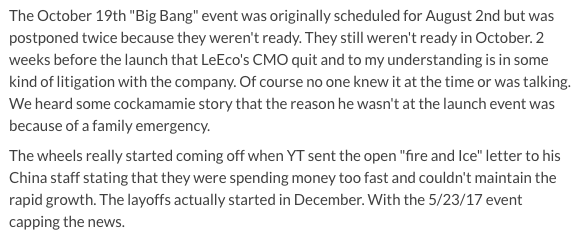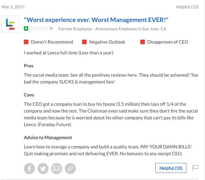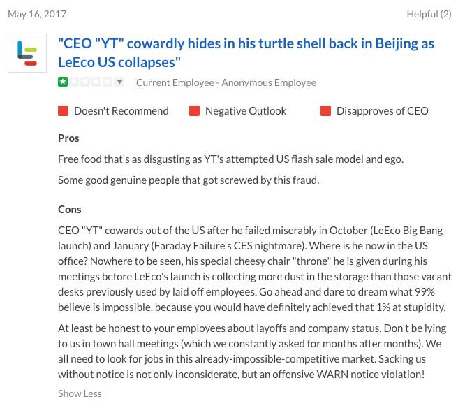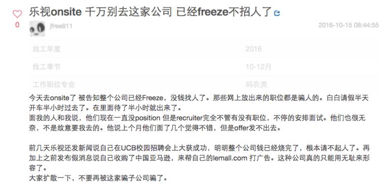 乐视北美大溃败:国王永久消失了,王朝也分崩离析了乐视在多个海外市场全线溃败,可能已经不只是离职员工对于这家公司的诅咒,而很可能马上就要成为现实了。 眼看他起高楼,眼看他宴宾客,眼看他楼塌了。 这一回,在美国曾经短暂“虚华”一时的乐视是真的彻底落魄了——整个办公区人去楼空;贾跃亭曾夸夸其谈的要迅速扩大到12000人的团队目前可能不足50人;一家号称“不差钱”要20亿美金收购美国公司的企业最终却颇有心机地在员工的遣散费上下功夫动黑手;甚至我们拍到了这家公司惨淡到以低价在美国二手网站上上以个为单位贱卖书桌、家具…… 贾跃亭的这场“征战美利坚”的大戏终于算是惨淡收场了。 人去楼空 周四的下午,扎堆在硅谷南面的中型科技公司中,圣何塞一号街的街角倒是显得格外冷清——空荡荡的停车场,更没有什么员工。更凄惨的是,大半扇办公大楼漆黑着,连灯都懒得开。 乐视北美园区 这栋大楼目前的主人就是来自中国的乐视。而这里就是贾跃亭在2016年不断提及和炫耀的“乐视北美总部”。 一年前,坐在这栋大楼里,对外籍员工自称是“YT”的贾跃亭,坐在一把华丽到让美籍员工觉得夸张的“宝座”上,告诉这里的每一个员工——乐视正式进军美国,并且将要在购买到的雅虎的地皮上建立新的生态园区,以及扩张到12000员工的规模。 站在空荡到让人发毛的停车场,看着眼前仅仅停着的27辆员工的私家车,再回想乐视初来美国刚刚租下这个7000多平米办公园区后,贾跃亭高喊出的那些豪言壮语,竟像是看了一整场闹剧。 乐视硅谷园区空空荡荡的停车场 停好车,绕着整栋大楼走了一圈,才发现比之前预想的要更加糟糕——半扇大楼都彻底黑着灯。 而勉强亮着灯的那一面办公区虽然摆满了书桌椅,但也只有一位女员工孤零零地坐在那里不知道在忙着什么。 和我有同样感受的还包括马路对面在另一家科技企业F5工作的两位美国员工。 同一天,马路对面的另外一家科技公司停车场却是停得满满当当。 “这样(空着)有几个月了。人越走越少,直到本周裁员后,几乎是人去楼空。”见我是个亚洲面孔在拍照,他们走过来和我聊天,甚至想从我口中得到更多关于这家来得快,去得更快的中国公司的八卦。 被贱卖的一切 “你也来买书桌吗?” 一位穿红色衣服的年轻人在乐视硅谷的大楼前问我。 “不是。”我如实回答。 “那你是买电脑的吗?据说他们的MacBook pro目前超低价,都是员工离职后出售的。”他告诉我说他知道这些信息都是从Craigslist(美国最大的同城交易平台)上看到的消息。 “不能理解,一家这么大的公司怎么会沦落到在那种地方一个一个单独出售书桌。”他说在硅谷,一家公司混到最差好歹也是整体出售书桌、椅子这样。 “单独一个出售还真是出乎意料。”他嘟囔着告诉我说一开始从Craigslist上看到联系了一下,发现是乐视才是卖家也着实吓了一大跳,且对于原先价格着实不菲的站立式可升降书桌280美金就贱卖掉感到不可思议。“真的穷途末路了吧。” 这个时候,一个颇为瘦弱的女孩子从园区一个不起眼的小侧门里出来推出来一台大桌子,且四周打量,显得格外警觉。 “你是不是在拍照?!你说,你是不是在拍照??”这个女孩子看到不远处站在园区门口的我,突然追过来一把抓住我的胳膊喊道。“不希望因为照片给自己惹上任何麻烦。”她告诉我说,最近每天都有记者来光顾,中国美国的都有。 可能大家都知道这家公司快不行了。 这些桌子都是公司给员工的,人都走空了, 留着桌子也没用,卖了还能换点钱回来。她坦白告诉我。“公司的确在低价出售一大批离职员工的书桌和电脑。” 在我呆在园区内的一个小时内,一共先后有两辆搬家公司的卡车停靠在园区内。 “之后,这栋大楼可能会被大部分出租吧。”她看着眼前正在太阳底下拆桌子的红衣小伙说。 见不得光的裁员计划 上周乐视裁员85%的消息在硅谷华人圈里犹如一颗炸弹炸开来。但比起乐视放出的那些有限的裁员细节,事实却更加糟糕、不堪,甚至让人心寒——这很可能是一场早已计划好的,对员工的利益充满机关算尽的裁员大戏。 “其实整个北美总部早就看起来不对劲了。”一位已经从乐视主动离职的可靠信源告诉我。 大概几个月前,办公室就有更多的人很反常地长时间选择了work from home(在家办公)。更准确地说,这栋办公大楼里的一些“明眼人”达成了某种默契——一边在家适当完成工作,一边开始着手发简历,找下一个工作机会。 直到两三个月前的一天,已经连续在家办公一阵子的她照例回到公司,却发现整层办公室几乎空掉了 。 没过多久,她辞去了乐视的工作。 “其实乐视并不是最近才开始裁员的。”这个计划早就暗暗进行了,她说。 她的话得到了很多乐视北美前员工的证实。 乐视为了防止引起媒体的注意,早在去年年末以及今年3月就开始了它的缓慢的分批裁员计划。乐视的多位前员工在 Glassdoor——美国最权威的对雇主的评估网站上这样写道。 为了营造出“还没有失败的假象”,已经没钱招聘新人的乐视北美甚至从2016年10月开始就玩起了“假装招聘”的把戏。 在美国华人工程师论坛“一亩三分地”中,一名网名为jfree811的网友在结束乐视的面试后写下了“乐视onsite,千万别去这家公司,已经freeze不招人了”的帖子。 “今天去onsite了,被告知整个公司
