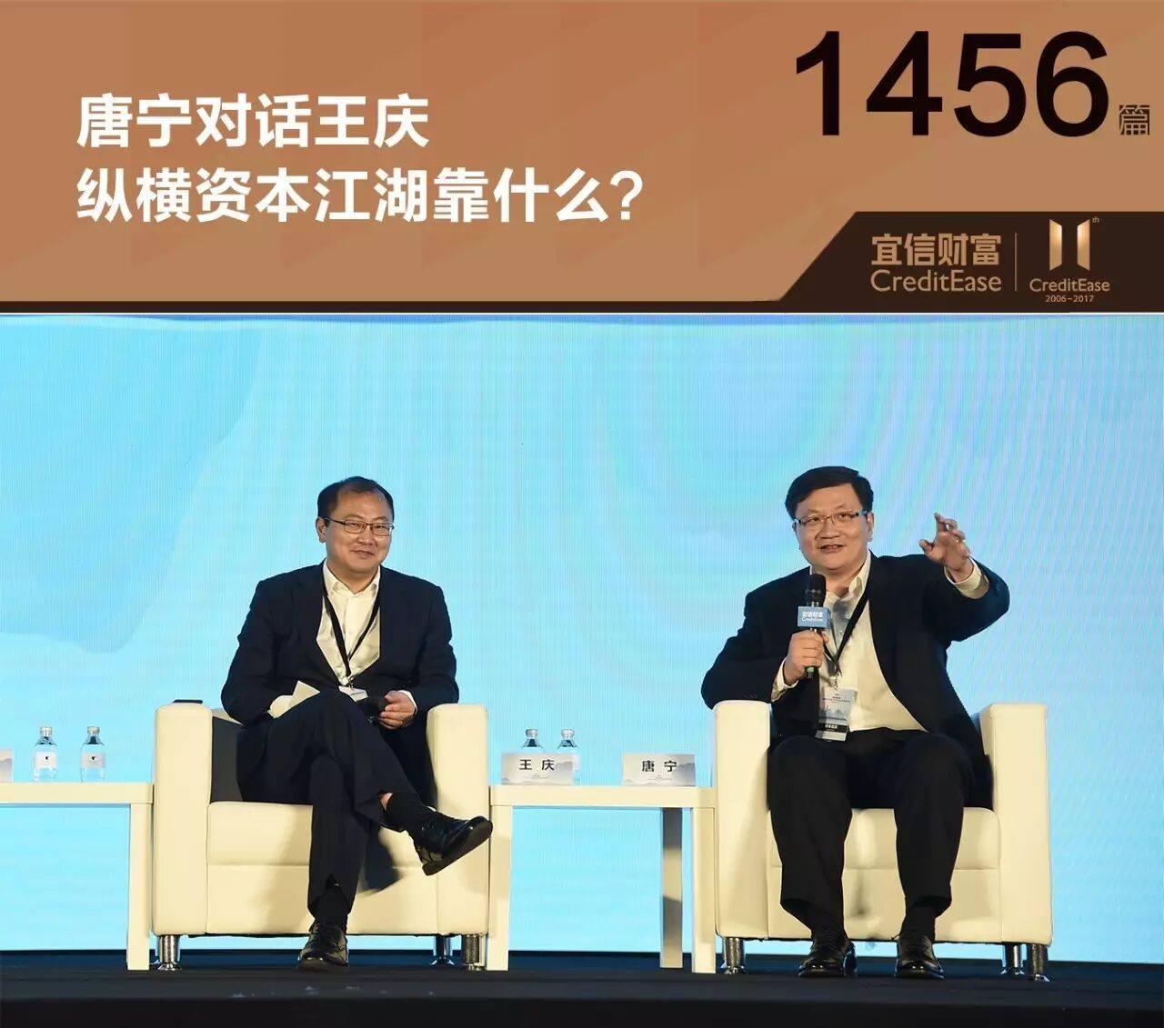 近日,在2017宜信财富全球资产配置之资本市场投资高峰论坛上,宜信公司创始人CEO唐宁先生对话重阳投资合伙人、总裁兼首席经济学家王庆博士,揭开价值投资的神秘面纱。 连续八年在素有“中国基金业奥斯卡”之称的金牛奖评选中获胜的重阳投资,是中国最大的阳光私募基金,所管理资产规模已逾百亿人民币。 王庆博士毕业于于中国人民大学,于1999年到2005年期间在国际货币基金组织任经济学家;2007年到2011年期间担任摩根士丹利大中华区董事总经理;2013年加入重阳投资,任总裁兼首席经济学家,是理论与实践完美结合的经济学家和实战大师。