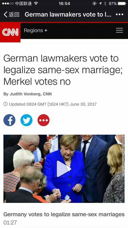 仔细算下来,大清亡国也不过才一百多年。 同在今日,德国以393票同意,226票反对,4票弃权通过了同性婚姻合法化法案,该法案同时将给予同性夫妇领养权。而我们的当局把同性恋和性变态混为一谈,完全无视性取向不是精神疾病的范畴。
