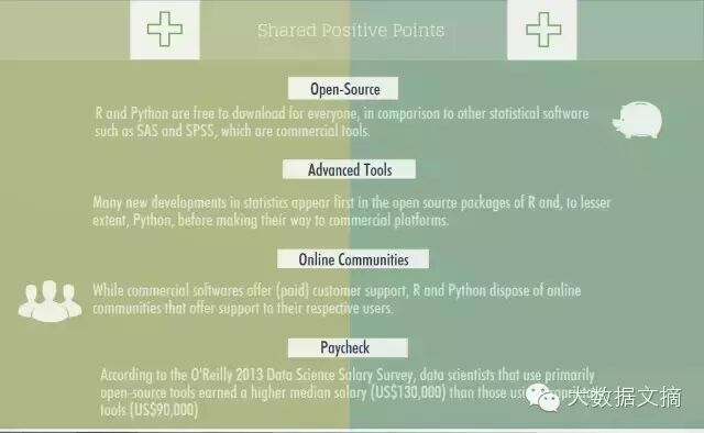 两种语言有很多共同优点。其一是开源,R和Python都是对任何人免费,其它统计软件(如SAS和SPSS)都是商业工具。