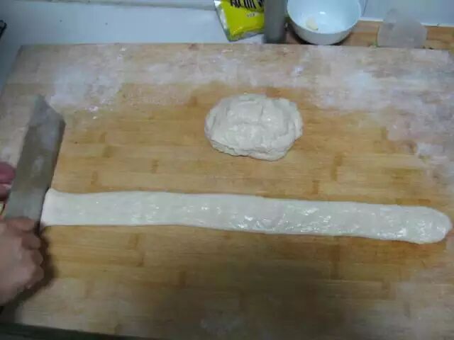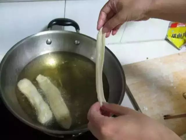 锅内放油,待油开,把剂子抻长放入锅中,油开后改小火。