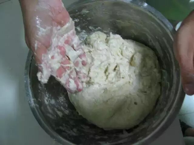 放入适量面粉,不需要加水,面不要和硬了。