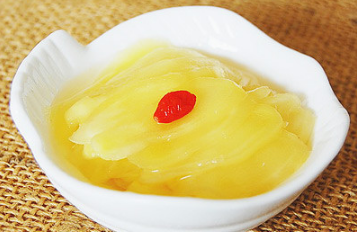原料:子姜 (仔姜)500克、枸杞子 1小撮、白醋 250克、冰糖 250克、食盐 2小勺。