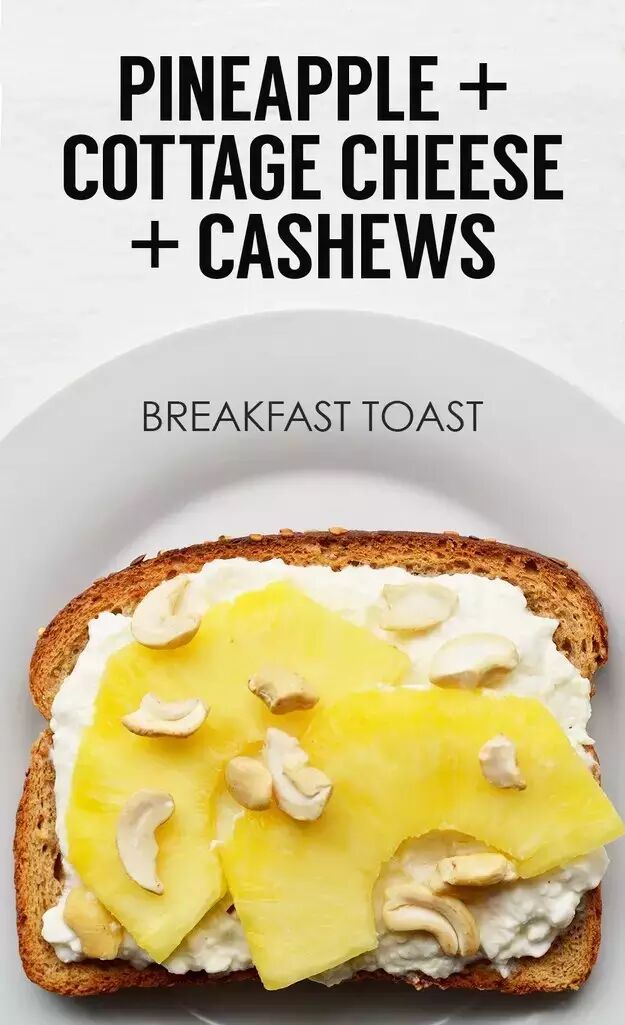 乳白干酪(Cottage cheese)披上凤梨切片(如果用罐头可能会有点甜,可以採用新鲜水果或许不错),撒上点碎腰果。