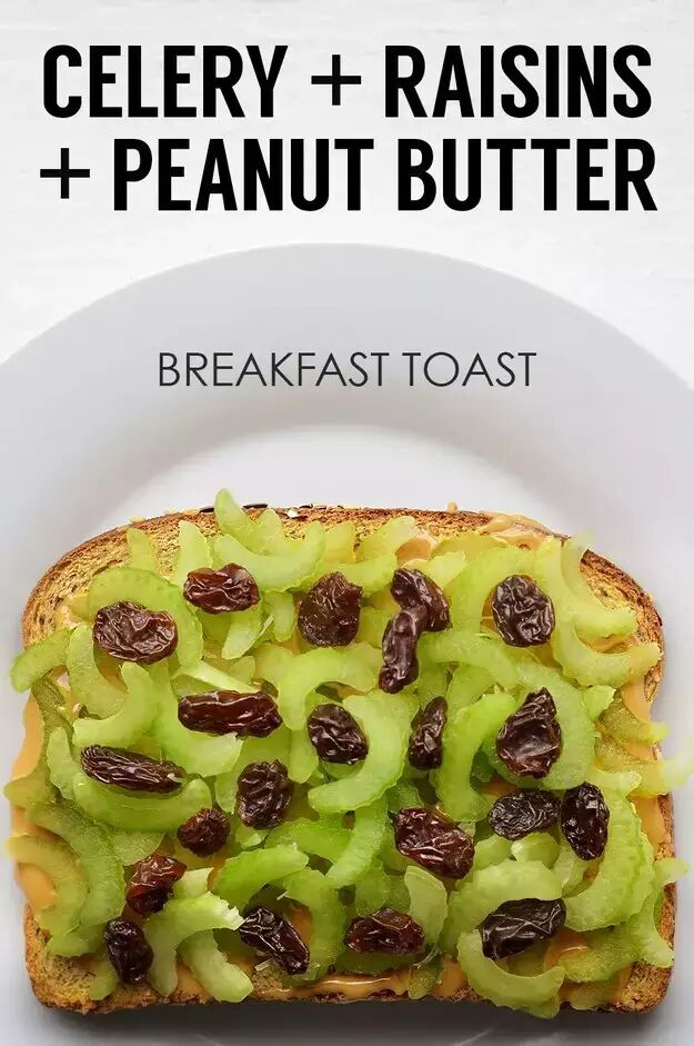 铺上花生酱,放上切片的芹菜片,最后撒上葡萄干,感觉是份超高纤的早餐。