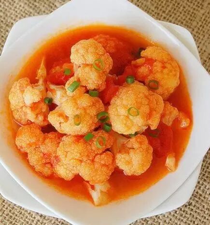 做法: 1)西红柿去皮,切成块。 2)花菜洗净掰成小朵,在沸水中焯至8成熟,捞起备用。 3)锅烧热放油,下葱姜末爆香。 4)放入西红柿块吵至浓稠。 5)倒入番茄酱。 6)下花菜翻炒。 7)待花菜熟透加少许糖,盐调味即可。
