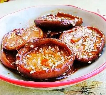 做法: 1)香菇去蒂洗净挤净水份。 2)锅中放少许油,入香菇略炒盛出。 3)锅中放油,入甜面酱炒香。 4)加入香菇翻炒。 5)加入适量水、少许高汤精大火煮开。 6)汤汁收尽时撒白芝麻翻匀出锅。