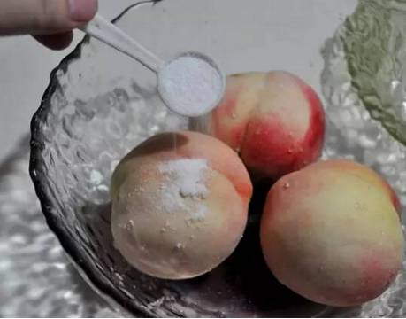 清洗方法:先用水淋湿,再抓一把盐涂在桃子表面,然后轻轻搓一下再放入水中泡一会儿,再用清水冲洗即可。