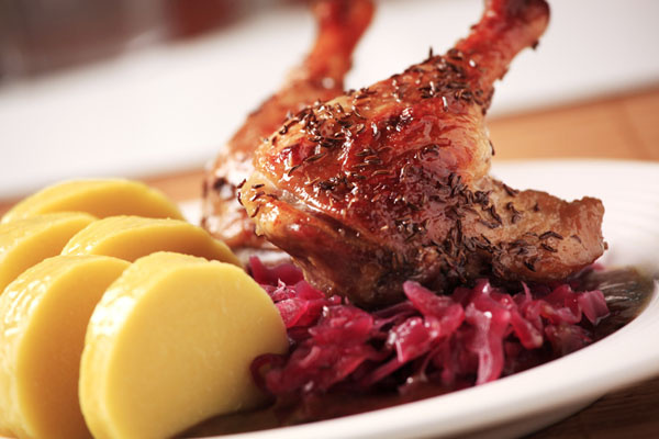 法式油封鸭(Confit de Canard)是法国西南部的传统,也是一种来自古代法国保存食物的方法(适用于猪、鸭、鹅等各种肉质食品)。在冬季,将这些肉类封在自其本身的油脂里慢慢烤好,然后直接封存起来,每次吃的时候拿出来一些,这样就可以度过漫长且不容易得到食物的冬季了。