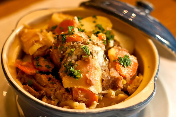 猪肉是阿尔萨斯最重要的一种食材,这里知名的菜肴定是离不开猪肉,比如阿尔萨斯当地人请客通常会准备法式炖肉锅(Baeckeoffe),其分量多,食材也很丰富,包括羊肉、猪肉和牛肉三种肉食,一层肉上放一层蔬菜,放入精美的陶瓷炖锅中,再加入白葡萄酒炖煮。