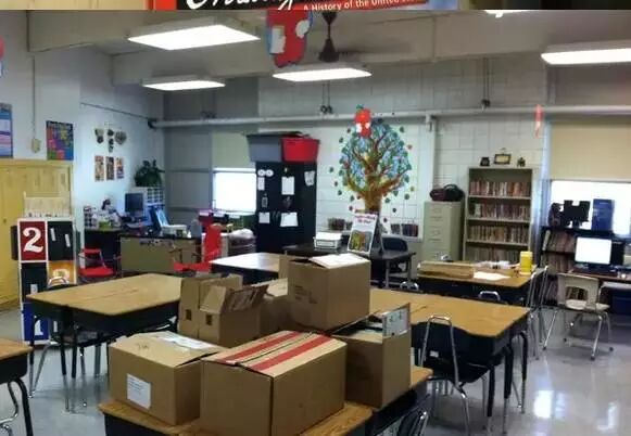 室内篮球场▼ 一个教室里放满了下学期的课本。美国的课本可以借,不是非要自己买,很多时候是读完一个年级的了课本还给学校,给下一年级的用。如图可以看出是旧书。(很多人问下图中的亚裔是谁,很多人指出是林璎)