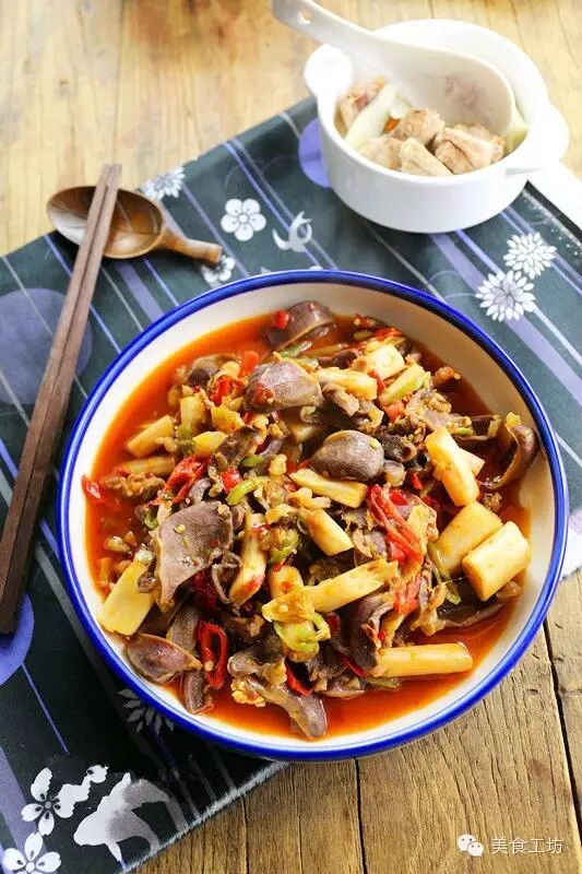 干锅鸡胗食材鸡胗,葱,大蒜,姜,油,豆瓣酱,酱油,糖,牛肉粉。