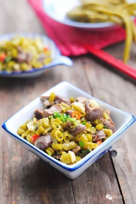 酸豆角炒鸡胗食材鸡胗 (250g) ,酸豆角 (2根),红椒 (1个) ,尖椒 (1个) ,青蒜 (1根)。
