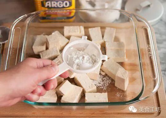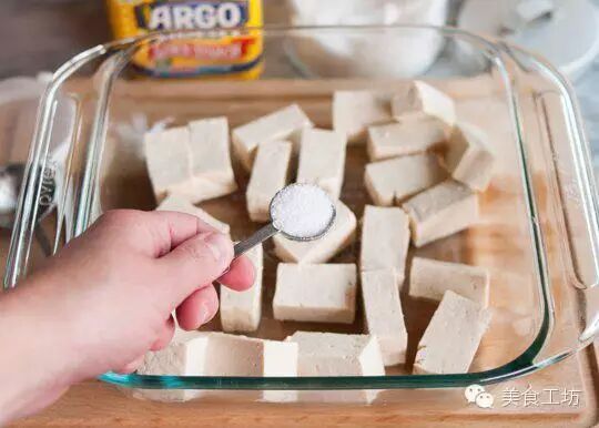 1块豆腐(400克左右) 半汤匙盐 3汤匙玉米淀粉 2汤匙油