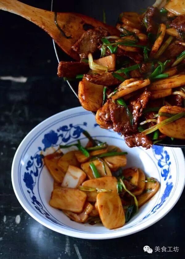 年糕是中国的传统食物, 是用黏性大的糯米或米粉蒸成的糕。 年糕有红、黄、白三色,象征金银, 年糕又称"年年糕",与"年年高"谐音, 寓意着人们的工作和生活一年比一年提高。 当糯糯的年糕配上鲜嫩的牛排, 大家知道是什么滋味吗? 吃货妹子已经等不及了, 这就给大家带来一道葱油牛排炒年糕!
