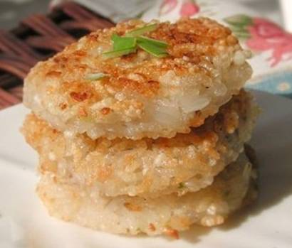 【焦香糯米藕饼】 原料:糯米、藕1根、油、盐、香油、小葱、十三香、白糖。