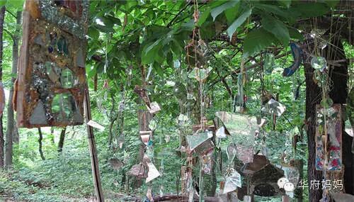 它是个隐藏的宝石,真的就是这样-如果你不知道要寻找它,就永远不会知道它在那里。另一个DC的“秘密”,用自然和废旧材料 制作的雕塑,坐落在宝马山花园游乐场(Palisades Playground)旁边的一小片树林里。有树枝艺术堆叠并结合在一起。破碎 的镜子和玻璃挂在树上看起来像一个超大的风铃。金属和塑料管,自行车框架,厚竹片,和其他零件从树枝挂下来,有些你甚 至可以演奏。 它有一个由木头和玻璃组成的大吊牌。隐藏在不显眼的树木之间增加了它的魅力。
