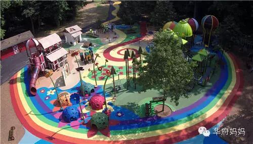 大华府最高大上的免费户外游乐场,是每个孩子都能来玩的公园。这公园与DC其他公园不一样的一点就是,这个公园是为所有 小朋友设计的,不管他们是不是坐着轮椅,需要背带,助行器,或者感知上有缺陷,所有的小朋友都能在这里玩的开心。秋千 有高靠背,并增添了安全措施,橡胶斜坡方便了轮椅上的小朋友探索整个园区,加宽的开口处方便进出游乐设施,扶手比平常 见的也低了一点,扶起来更方便。旋转木马也特意做成了和平地一边高,轮椅很方便上下。这里一大片色彩斑斓的游戏设施, 让每个小朋友兴奋度爆表。家长们喜欢这个公园,不仅因为他们的孩子可以在此娱乐,更因为他们喜欢这里的设计---是为了每 一个孩子。Clemyjontri 公园位于McLean 的6317 Georgetown Pike 。开放时间是早七点到黄昏。公园免门票,旋转木马是 $1.50。可查询网站,看旋转木马的运营时间。