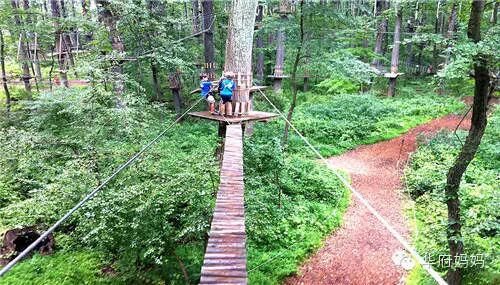 五英亩的树林就像一个天然的游乐园,配备10条绳索轨道,总共有180道障碍 - 都在树林间。游客通过树与树之间绳索,木板 和板条, 网和线(由铁锁连接)连成的“桥梁” 导航。你可以走上粗大的树枝,穿过大的金属箍,从高处呼啸而下才能到下一 个平台。新手他们提供绳索训练,之后都是自己摸索。简而言之:很。有。趣。自11月25日逢周末开放9点到黄昏,九月和十月 的周四下午3点至黄昏和周五下午1点 - 黄昏开放。在春季,周末和有些工作日上午9时 - 下午7时开放。在夏季,开放时间为 每日上午9时 - 晚上8点。参与者必须至少5岁, 5-6岁:由成人陪同(而且必须是一个大人带一个孩子),两个最简单的绳索 课程90分钟孩子和大人共计$ 34。3小时的冒险费用是48 $ / 12岁及以上,$ 43 / 10-11岁,$ 38 /7-9岁。