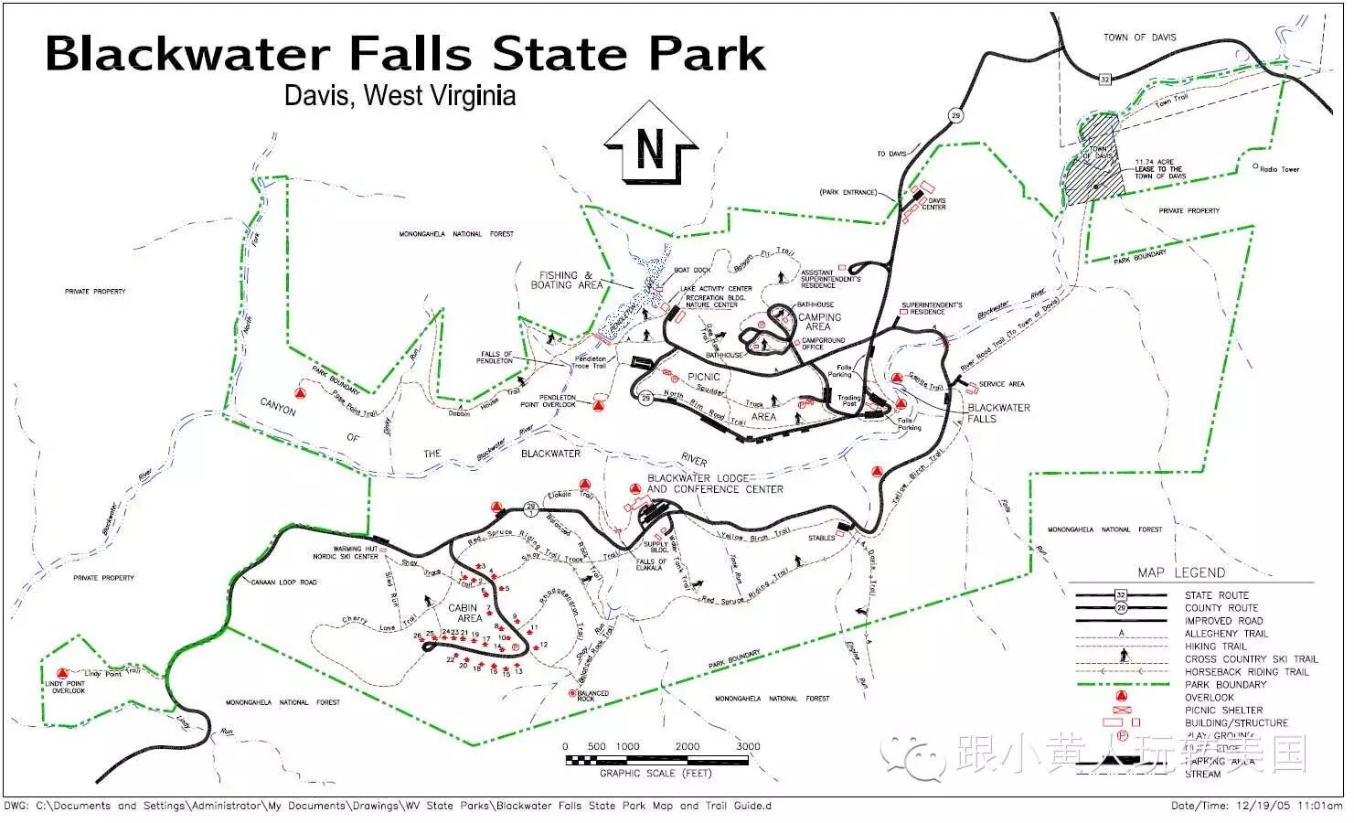 在上面提到的两个景点北边Davis小镇旁边有个Blackwater Fall State Park(1584 Blackwater Lodge Rd, Davis, WV 26260),这个Park无门票,有两个不大的fall和两个蛮漂亮的overlook可以看峡谷的风景,是一个极端简单,老少咸宜适合家庭度假的秋游场所。公园工作人员不是很多,所以出发前建议打印或者把地图保存到手机里(点击文章左下角“阅读更多”或者“read more”即可转向地图链接: http://www.blackwaterfalls.com/blackwaterparkmap.pdf