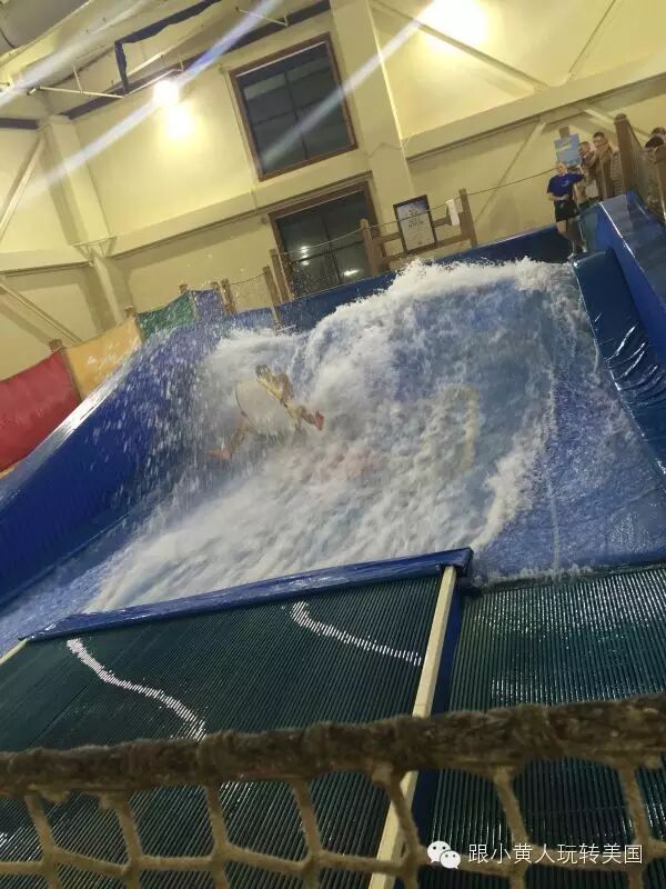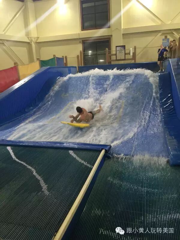 还有一个非常好玩的成人冲浪池,是拿滑板对浪冲,非常考验平衡力,是大人可以挑战的项目,所以大灰狼里面娱乐小娃也是可以娱乐大人的。