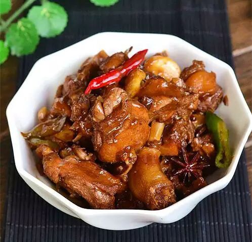 食材:鸭肉切块、啤酒、姜蒜、花椒、干红辣椒、八角、桂皮、生抽、老抽、白糖、盐、胡椒粉。 做法: 1.鸭子洗净剁块后焯水备用。 2.锅中放少许底油,下姜蒜片,干红辣椒,八角,桂皮,花椒炒香。 3.倒入鸭块翻炒。调入生抽,老抽,少许白糖炒匀。(这一步就一直炒到你觉得再不加水就不行了为止)。 4.加入能没过全部鸭块的啤酒,放盐调味,大火烧开后盖上锅盖焖40分钟左右。 5.再大火收汁,撒少许胡椒粉即可。 小编提醒: 1.鸭皮油挻多的,步骤2的时候,尽可能的少放点油。另外,也可以把脂肪较多的鸭皮给剔掉。 2.步骤3的时候炒的时间越长,后面焖的时间就要的越短,而且炒得久的话,会更香。 3.香料别放太多,抢了鸭子的鲜味就不好了。