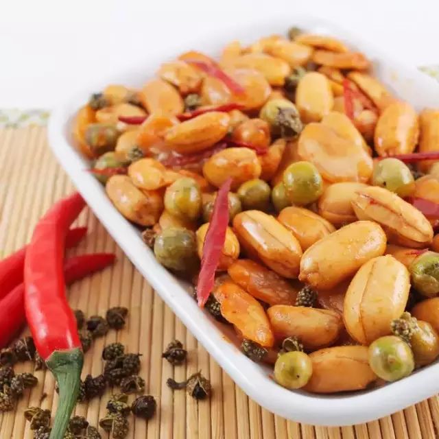 食材:花生米、花椒、干红辣椒、盐、白糖。 做法: 1.花生泡涨,剥去花生米的红衣,用厨房纸吸干水分,放冰箱冷冻一夜。 2.炒锅内放油,放入冰冻好的花生米,油慢慢小火加热,当炸熟后捞出,等油温升高一些后,再3把花生米放入复炸一次捞出沥油。 3.锅里留少许底油,放花椒,干红辣椒段炒香。 4.倒入花生米翻炒。起锅前撒适量盐,白糖调味即可。凉后很酥香哦。 小贴士: 1、炸花生米用的冷锅冷油,慢慢小火加热,这样花生米比较容易炸透。