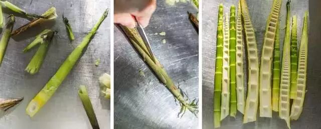 1、剥笋。将鲜笋剥开,切成条状,长短可以根据腌菜的瓶子进行调整~
