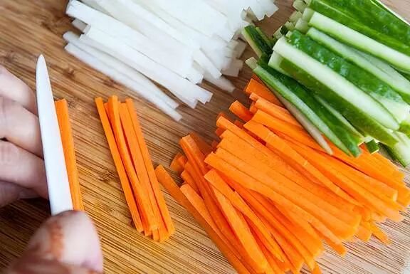 ▼胡萝卜、白萝卜、黄瓜切丝一起腌制的口感也不错,而且切成丝更容易入味~