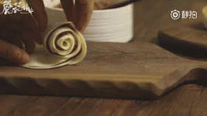 4、然后顺着饺子皮的头卷起来!卷扎的时候注意一定要紧实点!