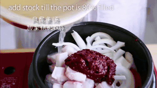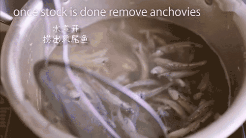 具体步骤 1. 锅中加干凤尾鱼、热水,煮30分钟,捞出凤尾鱼,凤尾鱼汤备用。 2. 洋葱切片,五花肉切条,豆腐切块,备用。