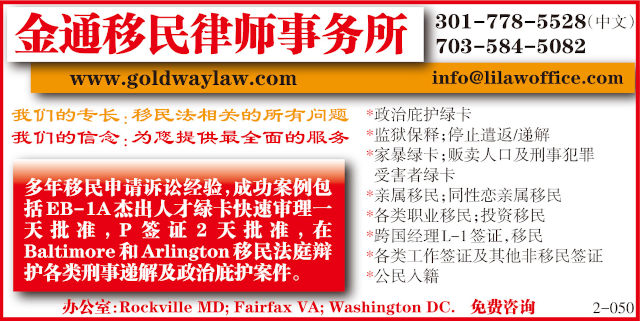 金通移民律师事务所专业从事各种美国移民和非移民服务。联系我们 info@goldwaylaw.com 中文电话 301-778-5528