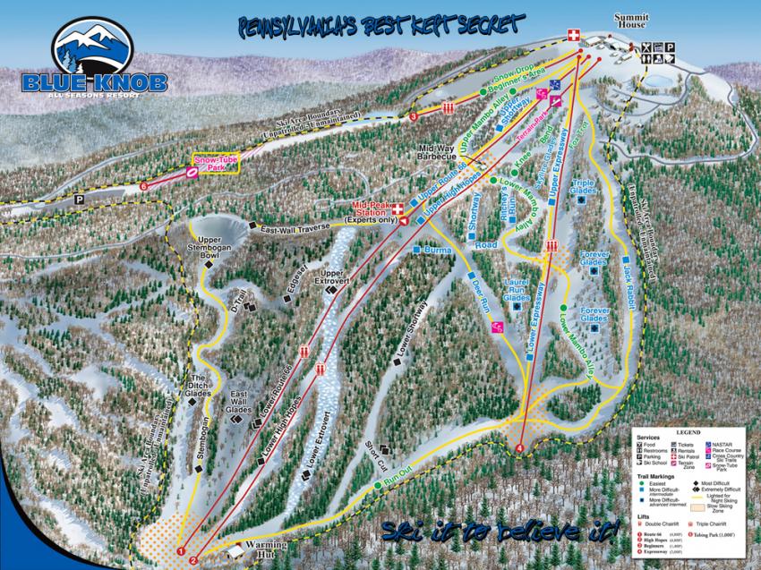 Blue Knob has 34 trails and a 1,072-foot vertical drop.